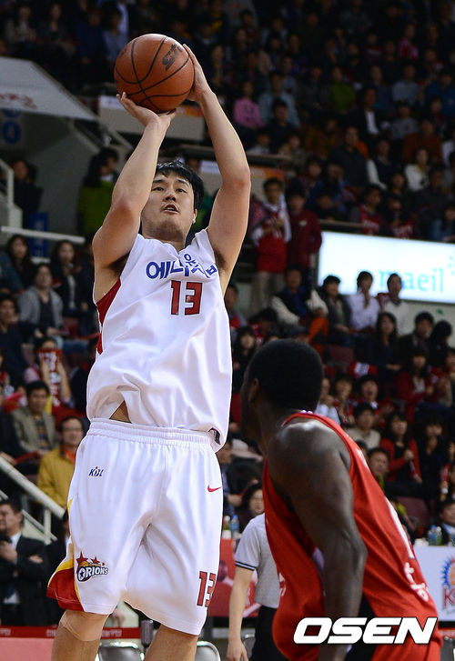 30일 오후 안양 실내체육관에서 열린 'KB 국민카드 2012-2013 프로농구' 6강 플레이오프 5차전 안양 KGC와 고양 오리온스의 경기 3쿼터 오리온스 김동욱이 점프슛을 시도하고 있다.