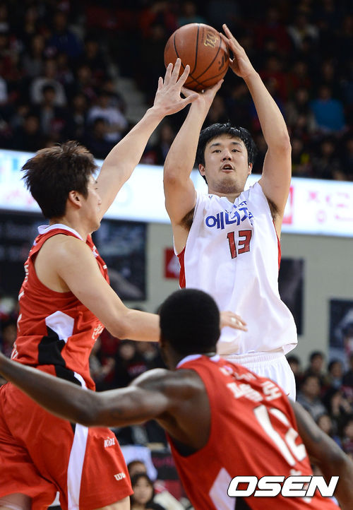 30일 오후 안양 실내체육관에서 열린 'KB 국민카드 2012-2013 프로농구' 6강 플레이오프 5차전 안양 KGC와 고양 오리온스의 경기 3쿼터 오리온스 김동욱이 점프슛을 시도하고 있다.