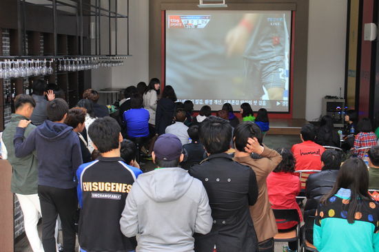 김용찬의 아버지인 김규주 씨도 묵묵히 아들의 경기 모습을 스크린을 통해 지켜봤다. 그는 "오늘 사정상 경기에 못 뛰는 선수들과 서포터즈와 함께 응원을 하니 집에서 TV를 보는 것보다 마음 졸이는 것이 훨씬 덜해 좋다"고 말했다.