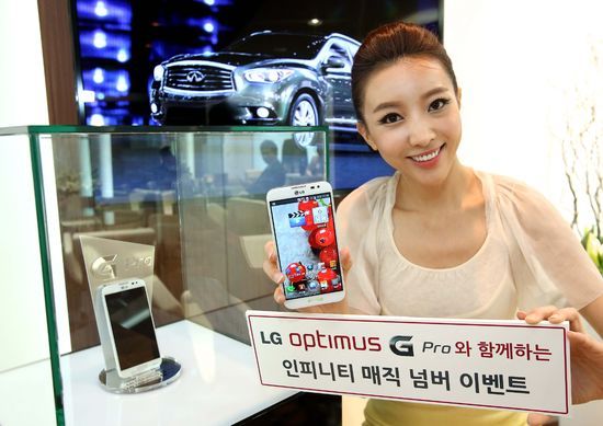 LG전자의 5.5인치 Full HD 스마트폰 ‘옵티머스 G Pro’가 2013 서울모터쇼에서 소비자들과의 소통 강화에 나선다.