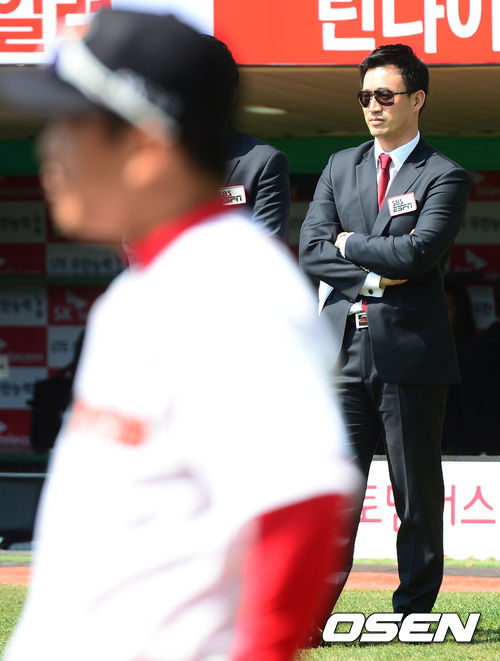 31일 오후 인천 문학구장에서 열리는 '2013 한국야쿠르트 세븐프로야구' SK 와이번스와 LG 트윈스의 경기를 앞두고 김재현 SBS ESPN 해설이 그라운드를 바라보고 있다.