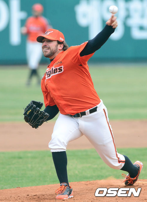 31일 오후 부산 사직구장에서 열린 '2013 한국야쿠르트 세븐 프로야구' 롯데 자이언츠와 한화 이글스의 경기 한화 선발 이브랜드가 역투하고 있다.