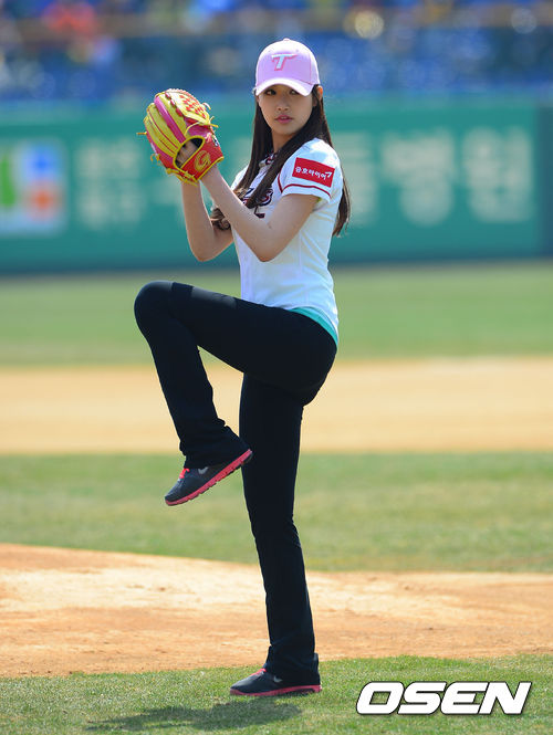 31일 오후 광주 무등구장에서 열린 '2013 한국야쿠르트 세븐 프로야구' KIA 타이거즈와 넥센 히어로즈의 경기, 경기에 앞서 미스코리아 진 김유미가 시구를 하고 있다