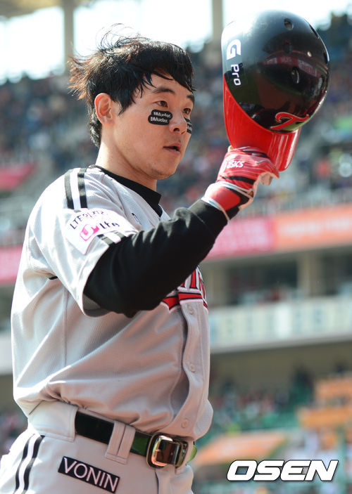 31일 오후 인천 문학구장에서 '2013 한국야쿠르트 세븐프로야구' SK 와이번스와 LG 트윈스의 경기가 열렸다. 2회초 LG 공격 2사 주자 없는 상황 8번 현재윤이 솔로포를 날리고 모자를 벗으며 덕아웃으로 들어오고 있다.