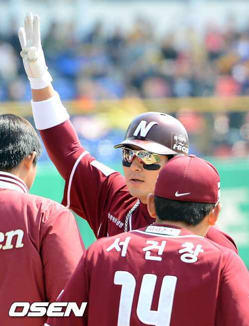 31일 오후 광주 무등구장에서 열린 '2013 한국야쿠르트 세븐 프로야구' KIA 타이거즈와 넥센 히어로즈의 경기, 1회초 2사 넥센 박병호가 솔로 홈런을 날린 후 팬들에게 인사를 하고 있다