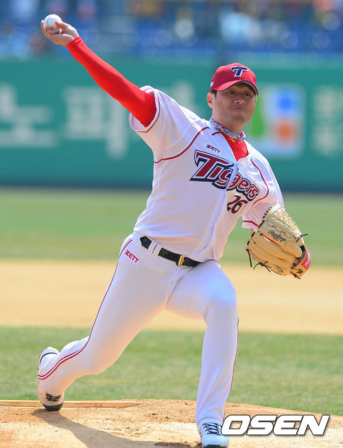 31일 오후 광주 무등구장에서 열린 '2013 한국야쿠르트 세븐 프로야구' KIA 타이거즈와 넥센 히어로즈의 경기,1회초 KIA 선발투수 서재응이 역투하고 있다