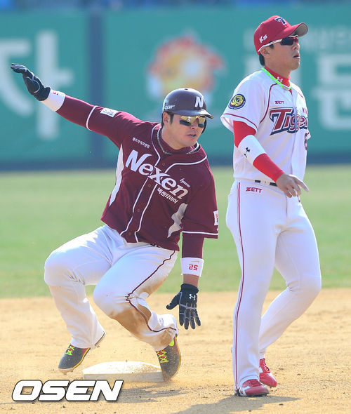 31일 오후 광주 무등구장에서 열린 '2013 한국야쿠르트 세븐 프로야구' KIA 타이거즈와 넥센 히어로즈의 경기,6회초 1사 1루 넥센 강정호의 타석때 1루 주자 박병호가 도루 성공하고 있다