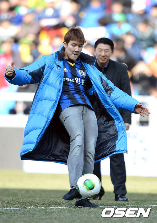 31일 오후 인천축구전용경기장에서 열린 '현대오일뱅크 K리그 클래식 2013' 4라운드 인천 유나이티드와 대전 시티즌의 경기에 앞서 박태환이 시축을 하고 있다.