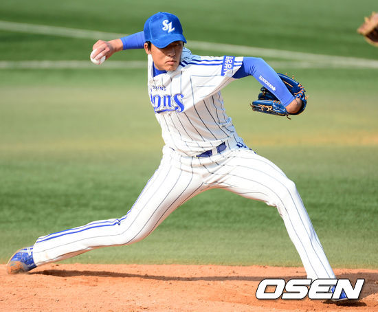 5회초 삼성 심창민이 힘차게 공을 던지고 있다.