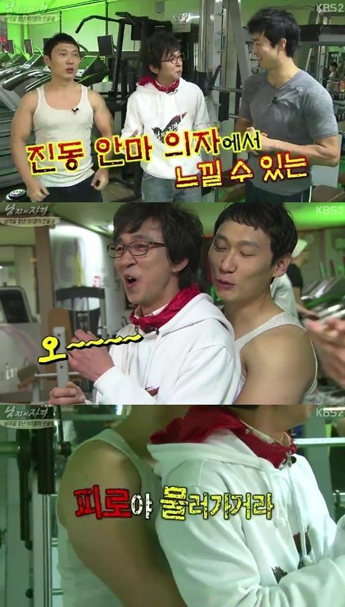 이날 김국진은 식스팩 미션에서 만났던 두 코치, 이승윤과 최성조를 만났다. 이승윤은 여전히 튼실한 가슴 근육을 자랑하며 운동에 매진하고 있어 눈길을 끌었다.