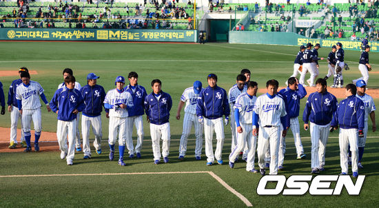 경기 종료 후 삼성 선수들이 관중석을 향해 인사를 하고 있다. /sunday@osen.co.kr