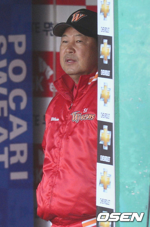 9회말 SK 공격 2사 주자없는 상황 SK 이만수 감독이 착잡한 표정으로 그라운드를 바라보고 있다.