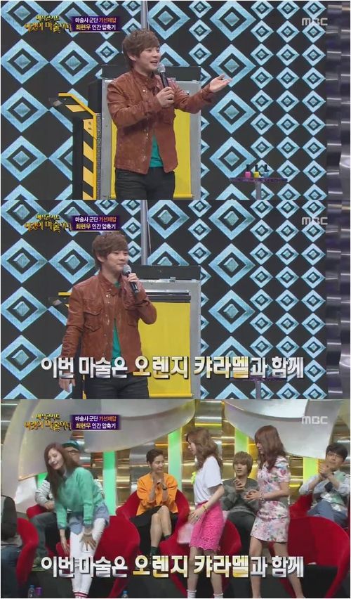 마술사 최현우가 걸그룹 오렌지캬라멜을 언급하던 중 말실수를 했다.