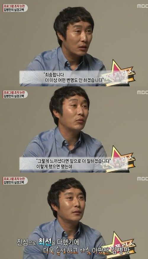 그리고 김병만은 “제 태도가 잘못됐던 것 같다. 앞으로 더 솔직하게 하겠다고 말씀드렸어야 했다”며 당시의 행동을 반성하는 모습을 보였다.