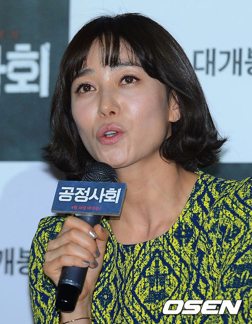 1일 오후 서울 동대문 메가박스에서 진행된 '공정사회 (이지승 감독) 언론배급시사회에서 장영남이 취재진의 질문에 답을 하고 있다.