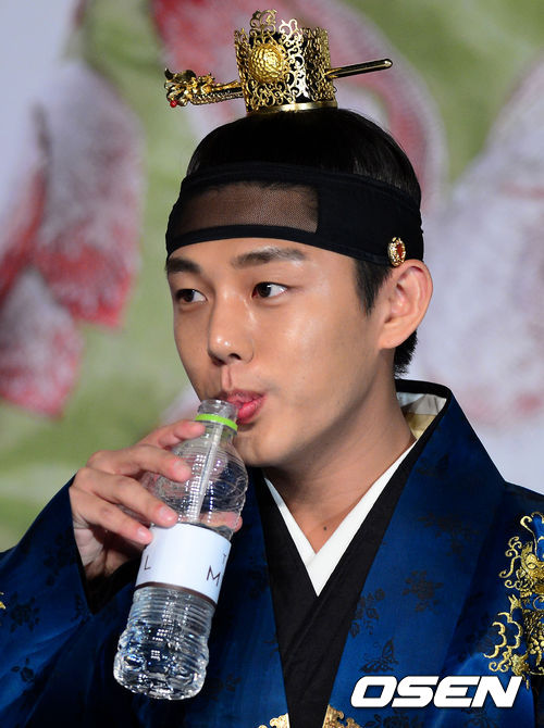 유아인이 간담회 도중 물을 마시고 있다.