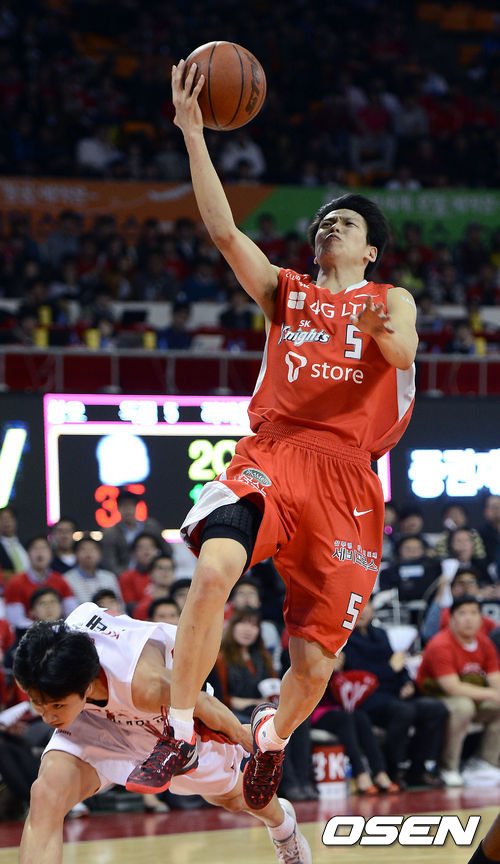 1일 오후 서울 잠실학생체육관에서 열린 'KB 국민카드 2012-2013 프로농구' 4강 플레이오프 1차전 서울 SK와 안양 KGC의 경기 2쿼터 SK 김선형이 레이업슛을 시도하고 있다.
