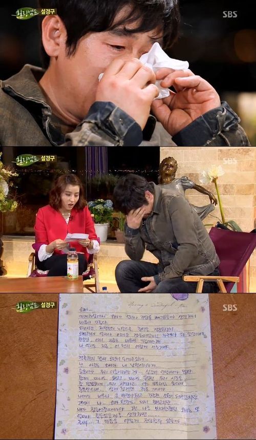 배우 설경구가 아내 송윤아가 몰래 보낸 손편지에 오열했다.
