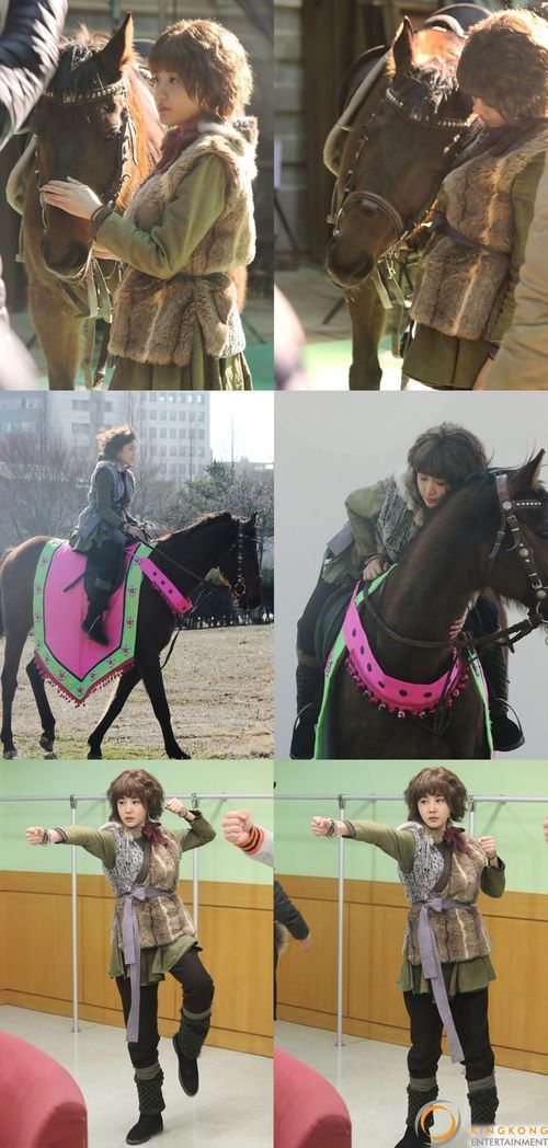 특히 관계자는 “윤진이는 남자 배우들 못지않게 말 타는 솜씨가 뛰어나다. 말과 환상의호흡을 자랑하는 것은 물론, 말에 대한 애정이 깊어 말과 함께 촬영을 할 때면 항상 화기애애한 분위기속에 촬영이 진행된다”고 전했다.