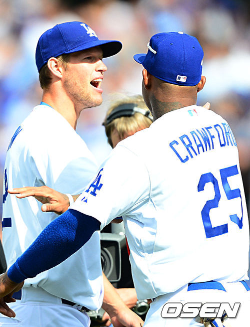 경기를 마치고 크로포드와 커쇼가 하이파이브를 하고 있다./ rumi@osen.co.kr