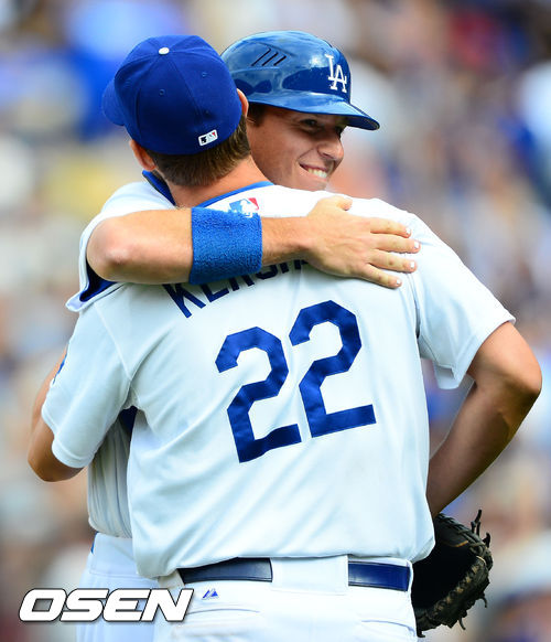 경기를 마치고 LA 다저스 커쇼와 A.J 앨리스가 포옹을 하고 있다./ rumi@osen.co.kr