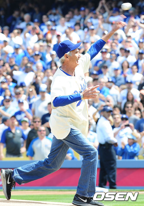LA 다저스 전설의 투수 샌디 쿠팩스가 개막전 시구를 하고 있다. / rumi@oen.co.kr