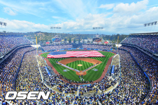 개막전, 다저스타디움에 펼쳐진 초대형 성조기!