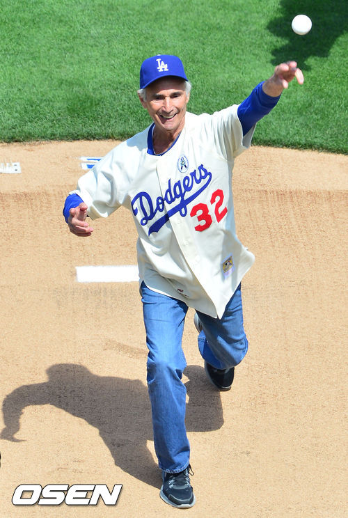 LA 다저스 전설의 투수 샌디 쿠팩스가 개막전 시구를 하고 있다. / rumi@oen.co.kr