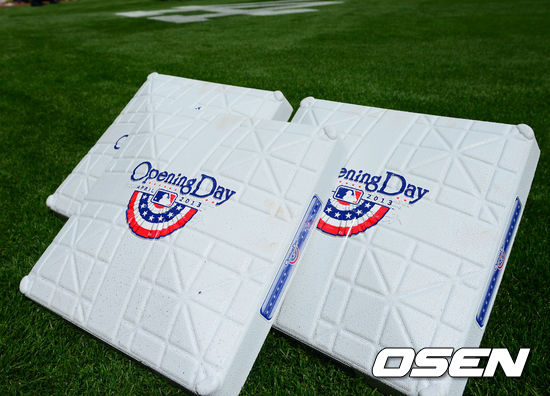 경기 전 개막전을 알리는 베이스가 그라운드에 놓여있다. / rumi@osen.co.kr