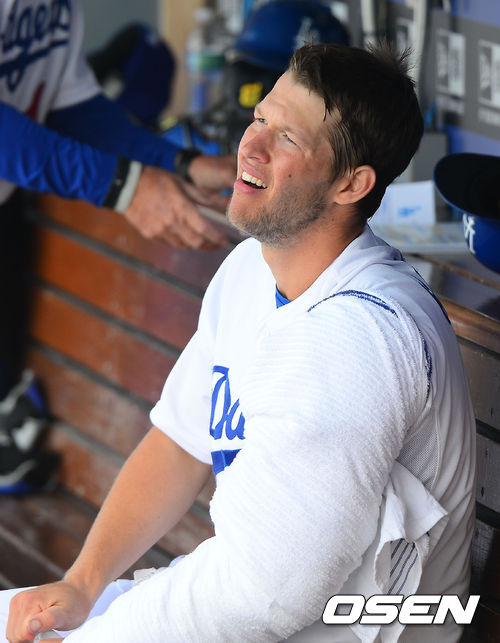 8회말 다저스의 선두타자 커쇼가 솔로 홈런을 날린 후 덕아웃에서 휴식을 취하고 있다. / rumi@osen.co.kr