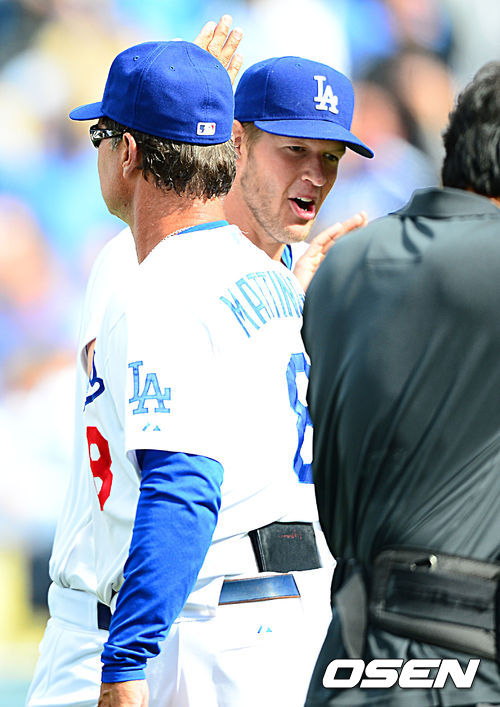 경기를 마치고 돈 매팅리 감독과 클레이튼 커쇼가 하이파이브를 하고 있다. / rumi@osen.co.kr