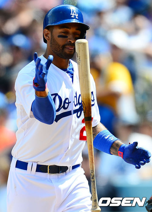 1회말 2사 LA 다저스 매트 캠프가 타석에서 삼진을 당한 후 아쉬워하고 있다. / rumi@oen.co.kr
