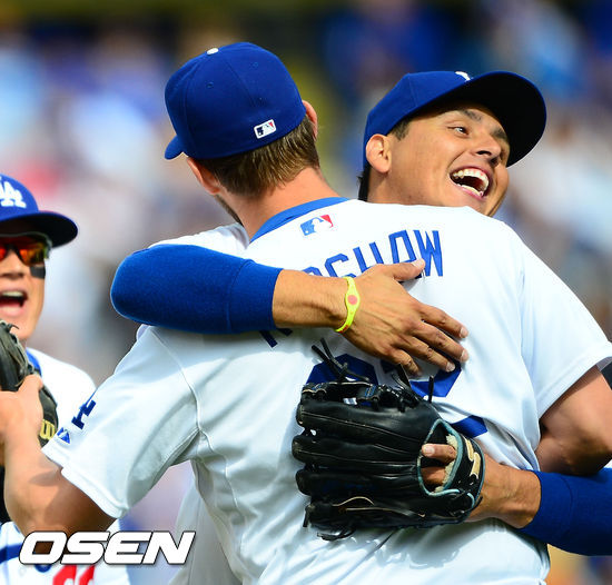 경기를 마치고 루이스 크루스가 커쇼와 포옹을 하고 있다. / rumi@osen.co.kr