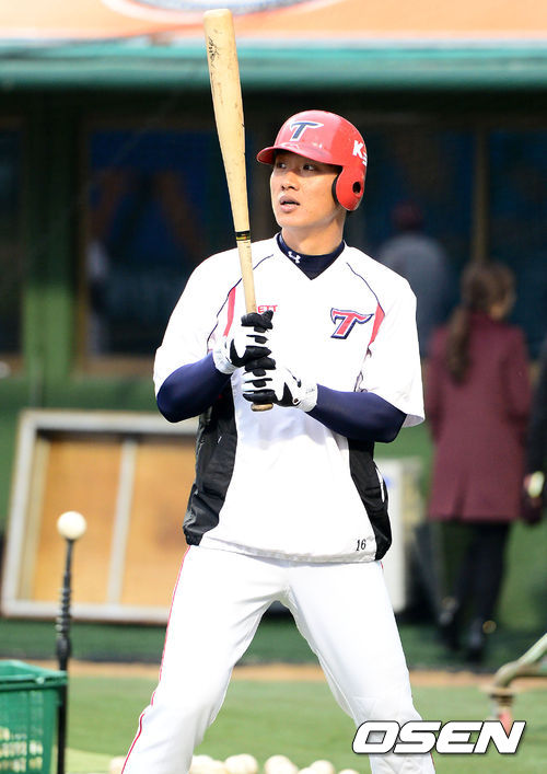 경기에 앞서 KIA 김주찬이 타격 훈련을 하고 있다.