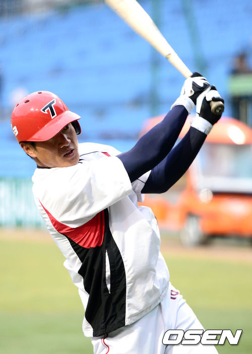 경기에 앞서 KIA 김주찬이 타격 훈련을 하고 있다.