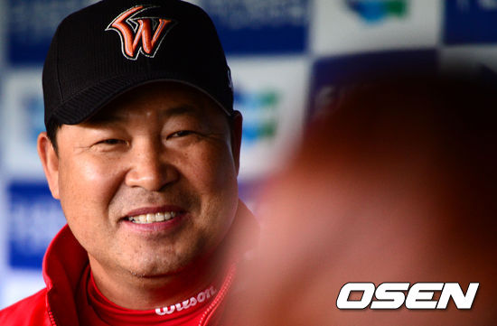 2일 오후 서울 잠실야구장에서 열리는 '2013 한국야쿠르트 세븐프로야구' 두산 베어스 대 SK 와이번스의 경기를 앞두고 SK 이만수 감독이 취재진과 대화를 나누고 있다.