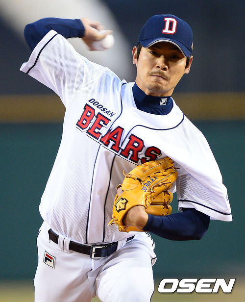 2일 오후 서울 잠실야구장에서 '2013 한국야쿠르트 세븐프로야구' 두산 베어스 대 SK 와이번스가 열렸다. 두산 선발 노경은이 힘차게 공을 던지고 있다.