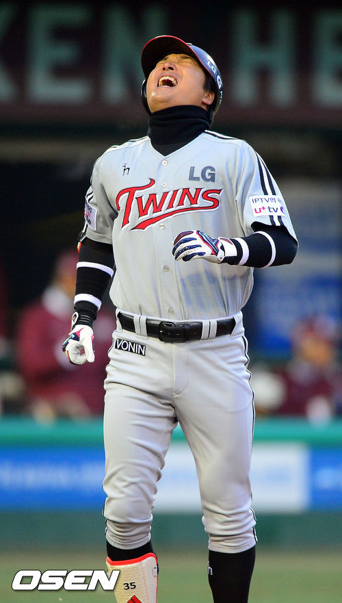 [OSEN=목동,박준형 기자 2일 오후 서울 목동구장에서 열린 '2013 한국야쿠르트 세븐 프로야구' 넥센 히어로즈와 LG 트윈스의 경기 1회초 1사 1,3루 3루수 라인드라이브 아웃된 LG 이진영이 아쉬워하고 있다.
