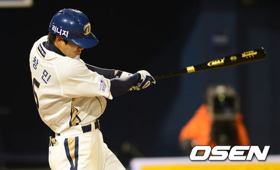 2일 오후 창원 마산구장에서 열린 '2013 한국야쿠르트 세븐 프로야구' NC 다이노스와 롯데 자이언츠의 경기 6회말 2사 모창민이 좌전 안타를 치고 있다.