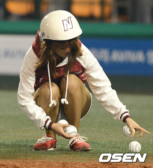 2일 오후 서울 목동구장에서 열린 '2013 한국야쿠르트 세븐 프로야구' 넥센 히어로즈와 LG 트윈스의 경기 , 넥센 초보 배트걸이 공을 줍고 있다