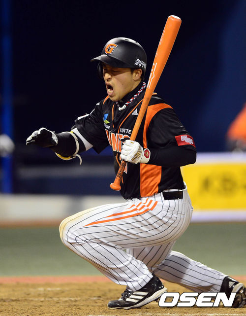 2일 오후 창원 마산구장에서 열린 '2013 한국야쿠르트 세븐 프로야구' NC 다이노스와 롯데 자이언츠의 경기 9회초 1사 1루 손아섭이 이태양의 투구에 몸을 맞고 있다.