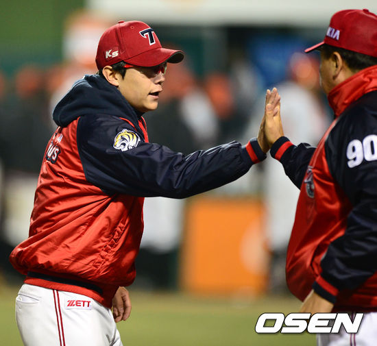 경기 종료 후 KIA 양현종이 선동렬 감독과 하이파이브를 하고 있다. /sunday@osen.co.kr