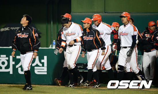 경기 종료 후 한화 선수들이 아쉬운 표정을 그라운드를 나가고 있다. /sunday@osen.co.kr
