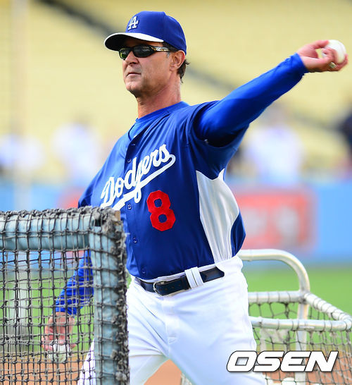 3일 오전(이상 한국시간) 미국 캘리포니아 로스앤젤레스 다저스타디움에서 LA 다저스와 샌프란시스코 자이언츠의 경기가 열릴 예정인 가운데 훈련 시간에 LA 다저스 돈 매팅리 감독이 배팅볼을 던져주고 있다.