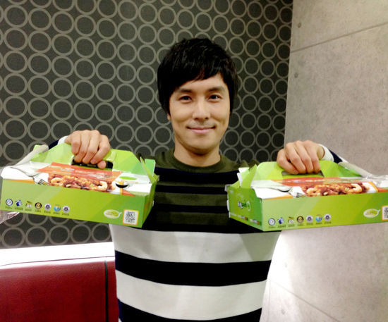 김동완은 2일 자신의 소속사 라이브웍스컴퍼니 트위터에 "미스터 김 동완! 팬 여러분들이 보내주신 치킨 먹고 KBS 1TV 일일연속극 '힘내요, 미스터 김' 스태프들 모두 힘내서 촬영!"이라는 글과 함께 한 장의 사진을 게재했다.