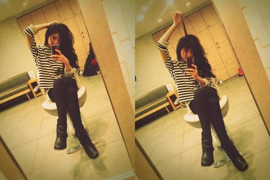 수지는 3일 자신의 트위터에 "매니저 오빠가 샵에 도착하는데 5분에서 10분이 걸리신단다. 그럼 난 놀고 있어야지", "앞머리 길이 체크 한 번 해보고?"라는 글과 함께 사진을 올렸다.