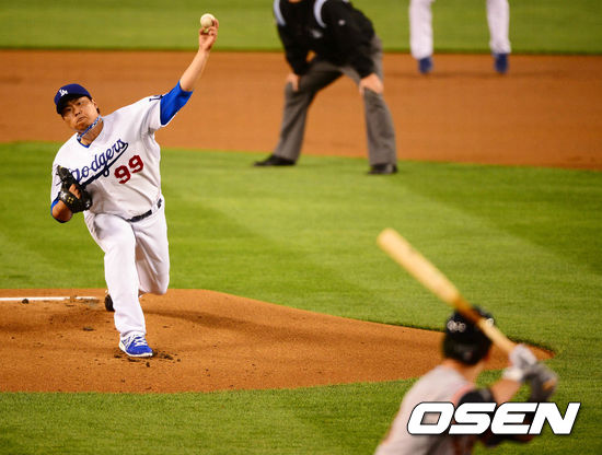 LA 다저스 류현진(26)이 3일 오전(한국시간) 미국 캘리포니아 로스앤젤레스 다저스타디움에서 열린 '2013 메이저리그' 샌프란시스코 자이언츠와 개막 두 번째 경기에 선발투수로 빅리그 데뷔전을 가졌다.