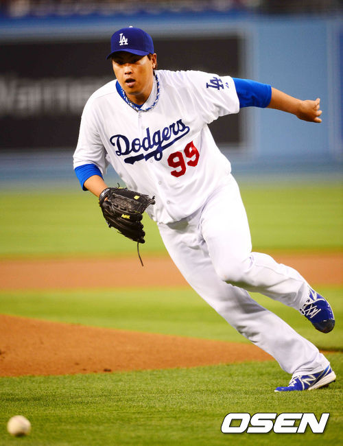 LA 다저스 류현진(26)이 3일 오전(한국시간) 미국 캘리포니아 로스앤젤레스 다저스타디움에서 열린 '2013 메이저리그' 샌프란시스코 자이언츠와 개막 두 번째 경기에 선발투수로 빅리그 데뷔전을 가졌다.