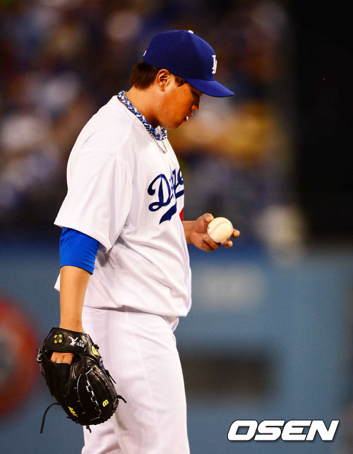 LA 다저스 류현진(26)이 3일 오전(한국시간) 미국 캘리포니아 로스앤젤레스 다저스타디움에서 열린 '2013 메이저리그' 샌프란시스코 자이언츠와 개막 두 번째 경기에 선발투수로 빅리그 데뷔전을 가졌다.