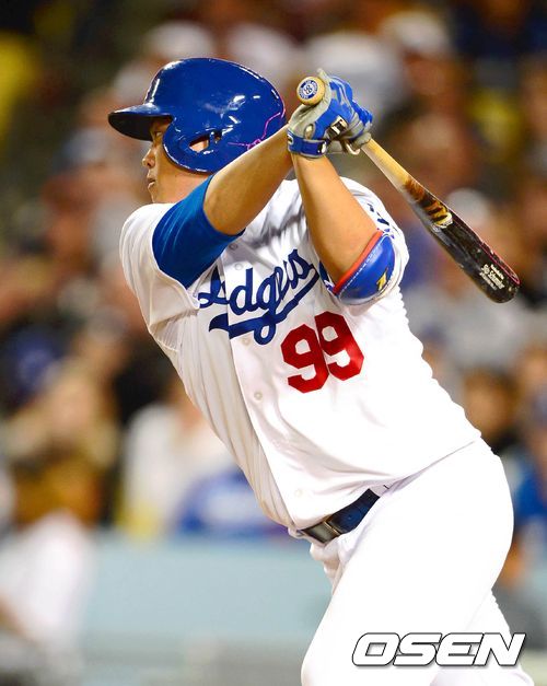 3회말 1사 류현진이 호쾌한 타격을 선보이고 있다.